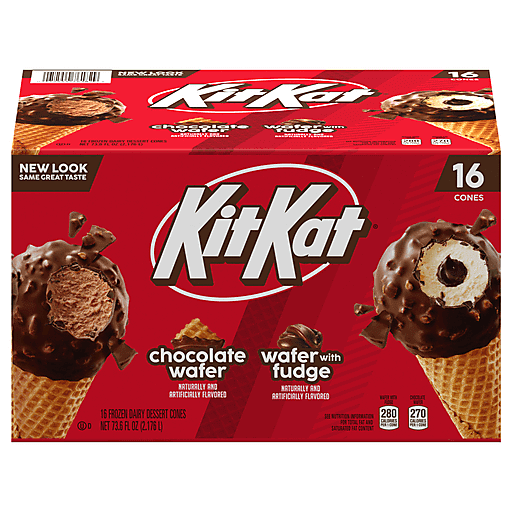 Kit Kat Wafer With Fudge/Chocolate Wafer Frozen Dairy Dessert Cones 16 ea